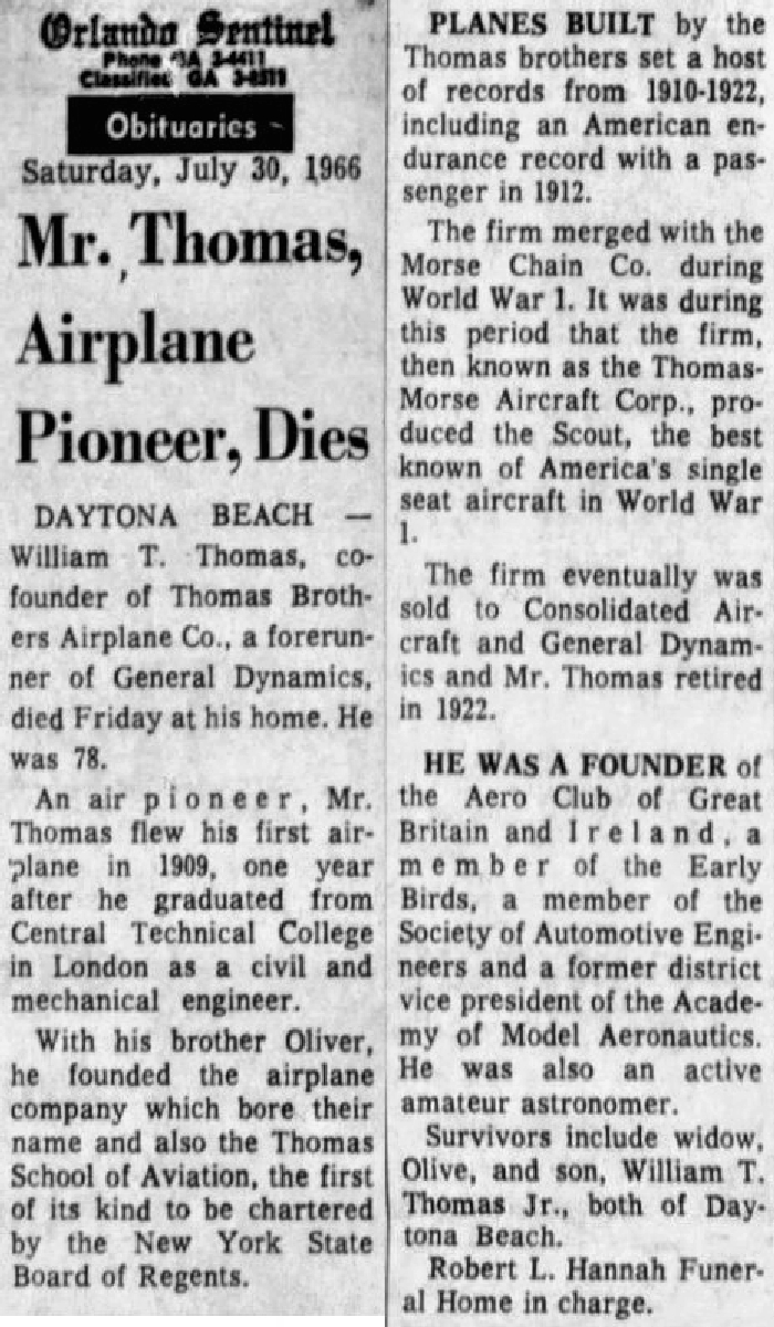 Isabel “Dolly” King & Oliver W. ThomasOliver W. Thomas, born in Argentina, educated in England, pioneered avaition in the U.S.A. |